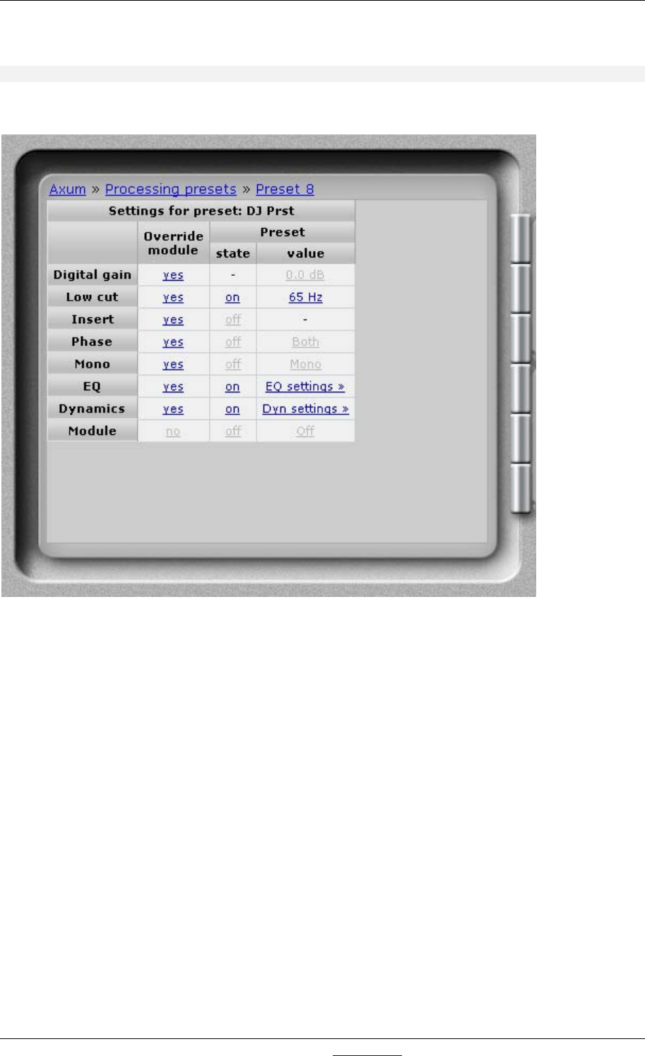 - These are the programmed processing defaults for the modules. Depending on the startup settings these processing defaults will be used at startup (programmed defaults in global configuration).The field ‘Use at source select’ determines if the default module processing in the source configuration is used when a source is assigned via the module source select functionality and no processing preset is assigned in the ‘source configuration’.