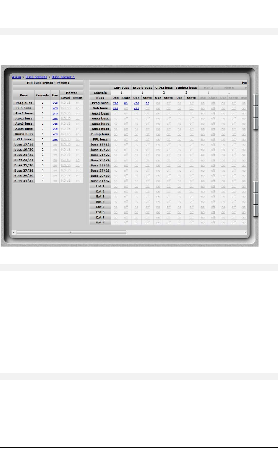 On this page you can set the required levels and state for all busses and monitor busses which are