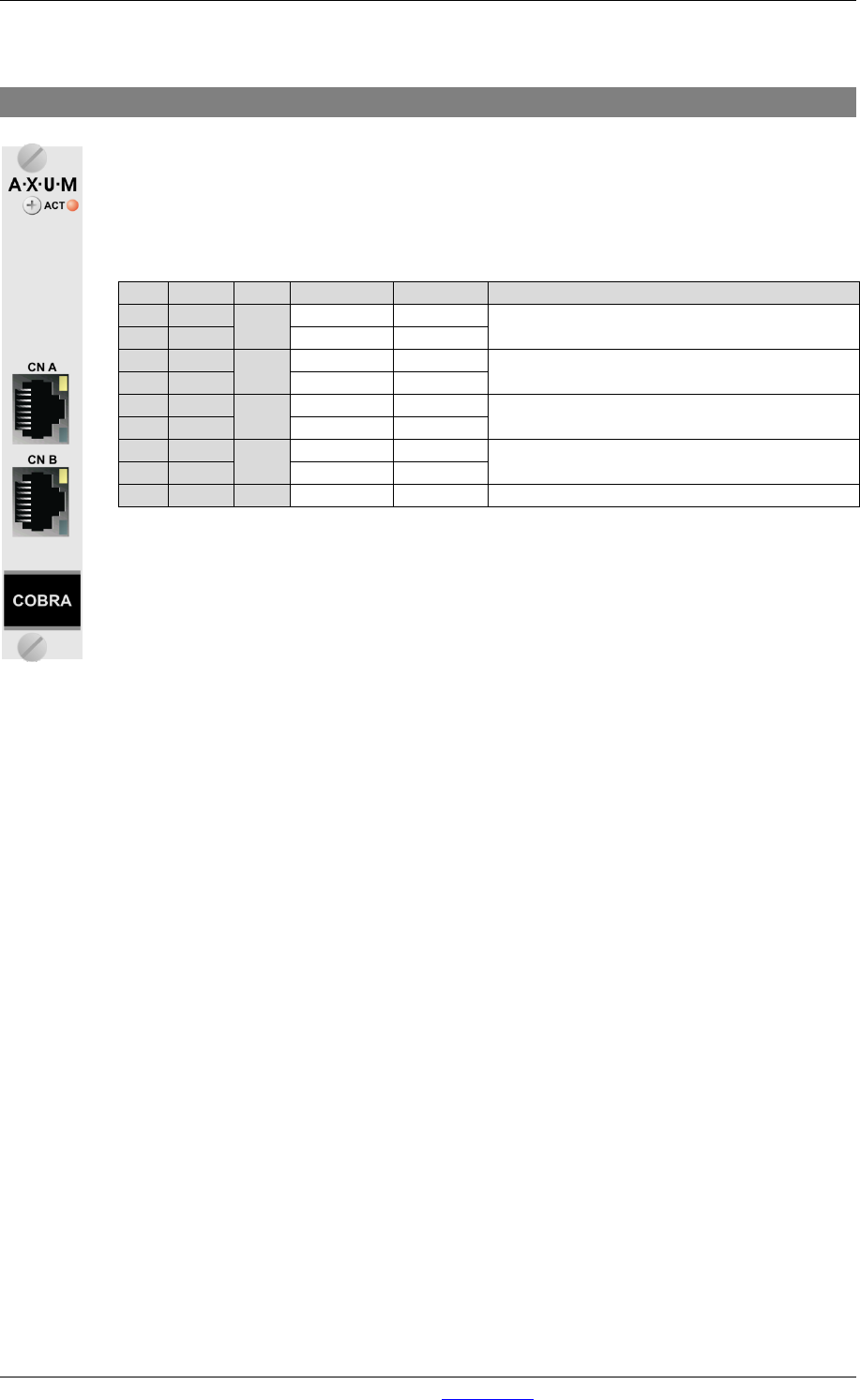 Table 10-7: CobraNet RJ45 (Ethernet) connection.