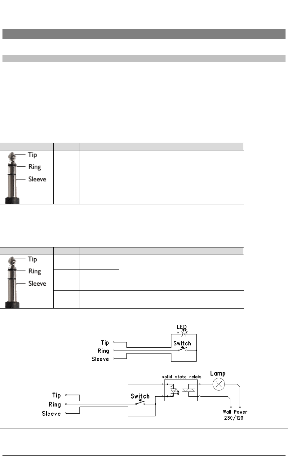 Remote-Output by a build in Solid State Relay. The relay is situated between Tip and Ring of the