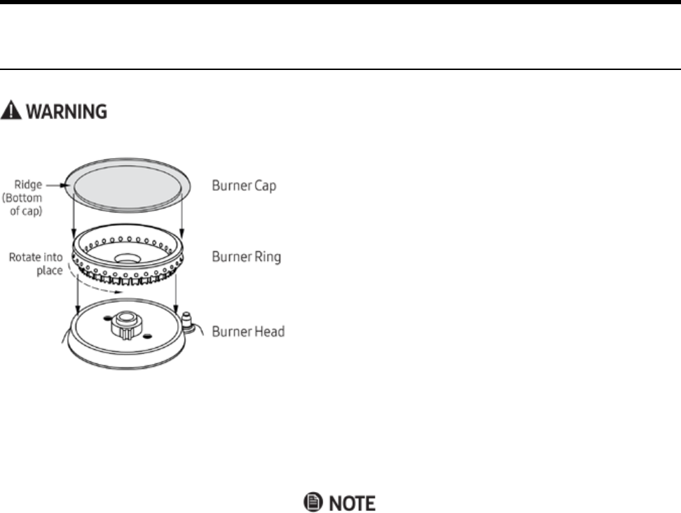 3. Install the burner cap so the ridge on the bottom of the