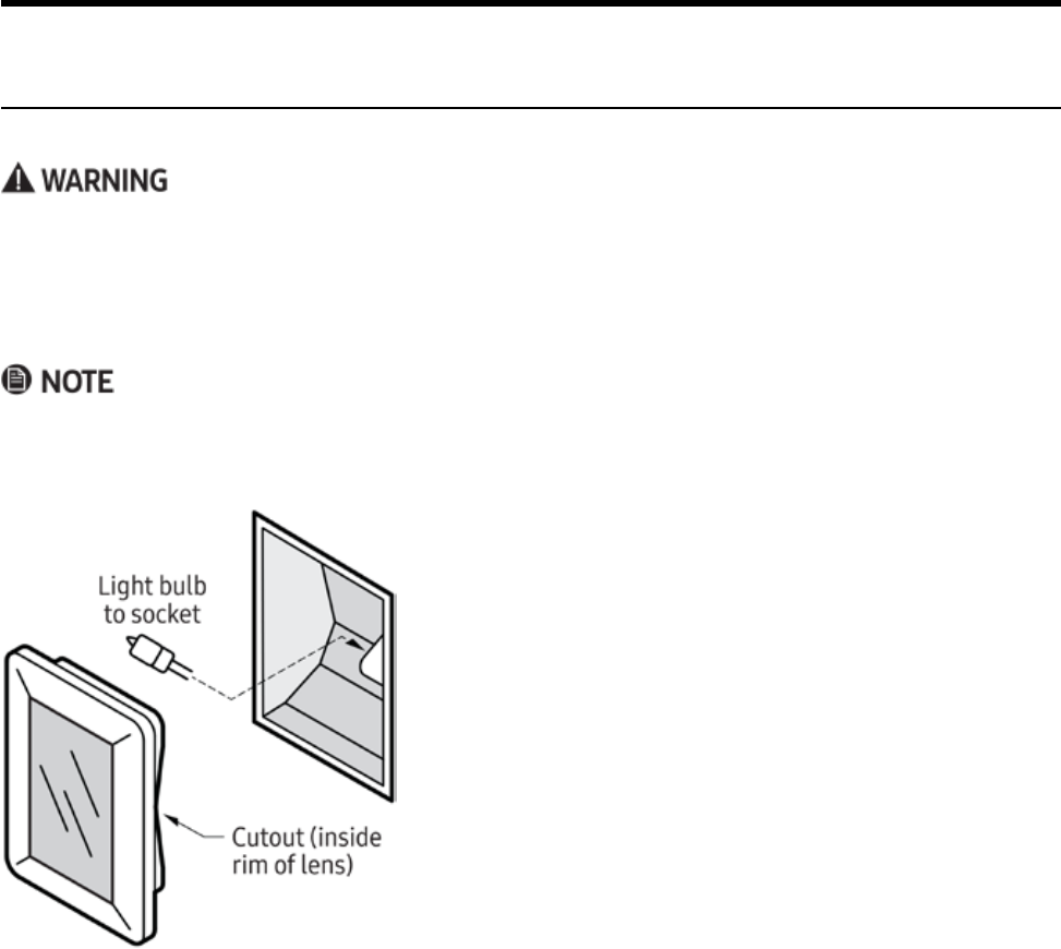 • To prevent electric shock, turn off power to the oven, and ensure the oven and bulbs are cool.
