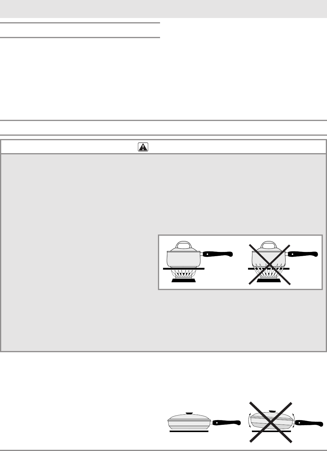 • To avoid burns and scalding, always turn pan handles to a position where they cannot be easily hit. Also, handles