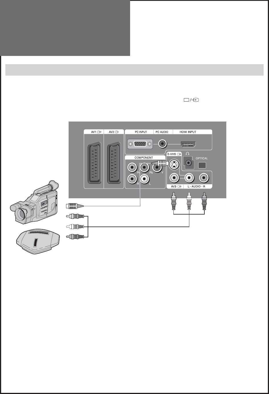 4. Select AV3 or S-video mode, using the ”AV button of the Remote controller or button of the TV set.