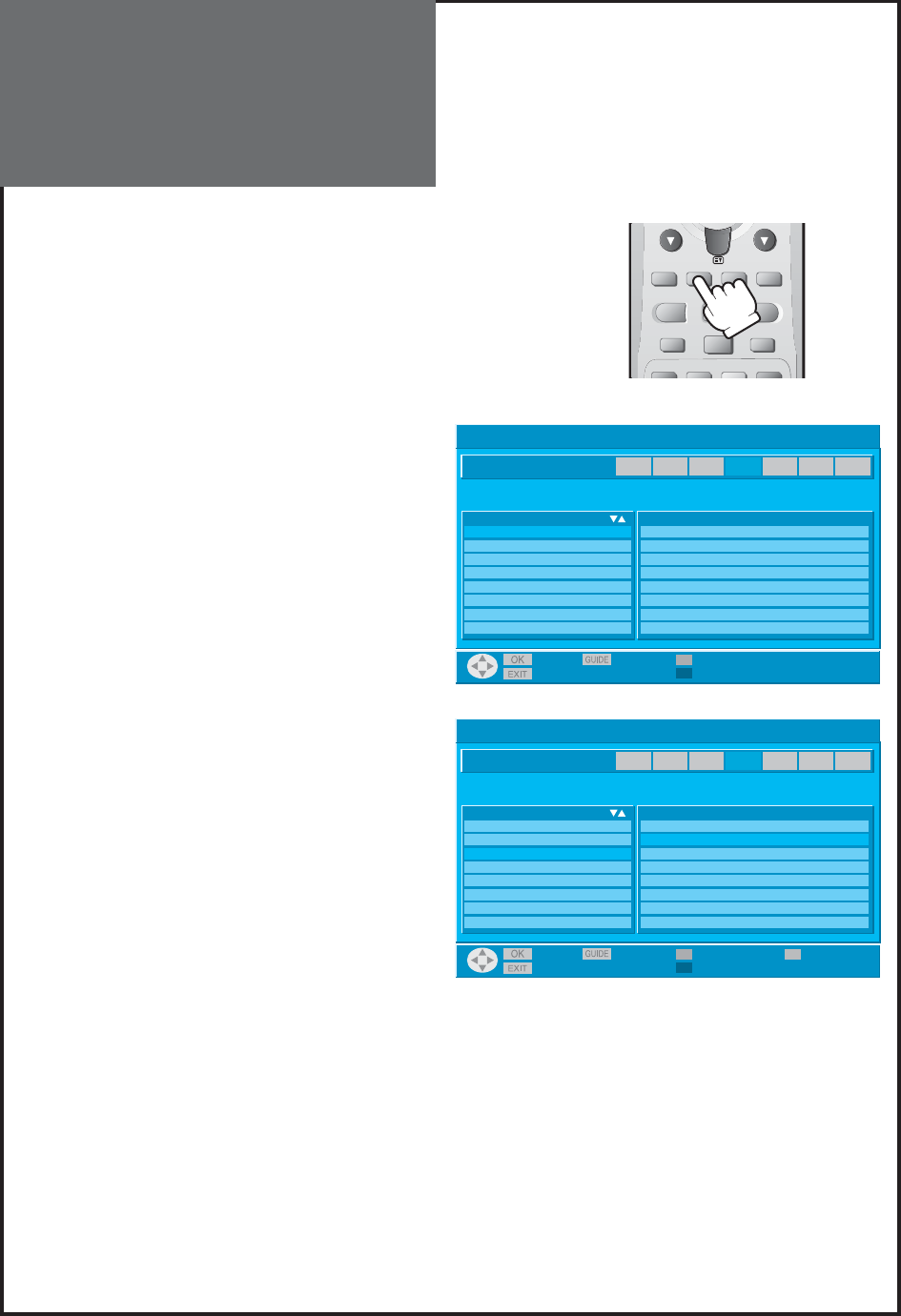 - The DTV Electronic Program Guide(EPG) displays program informa-