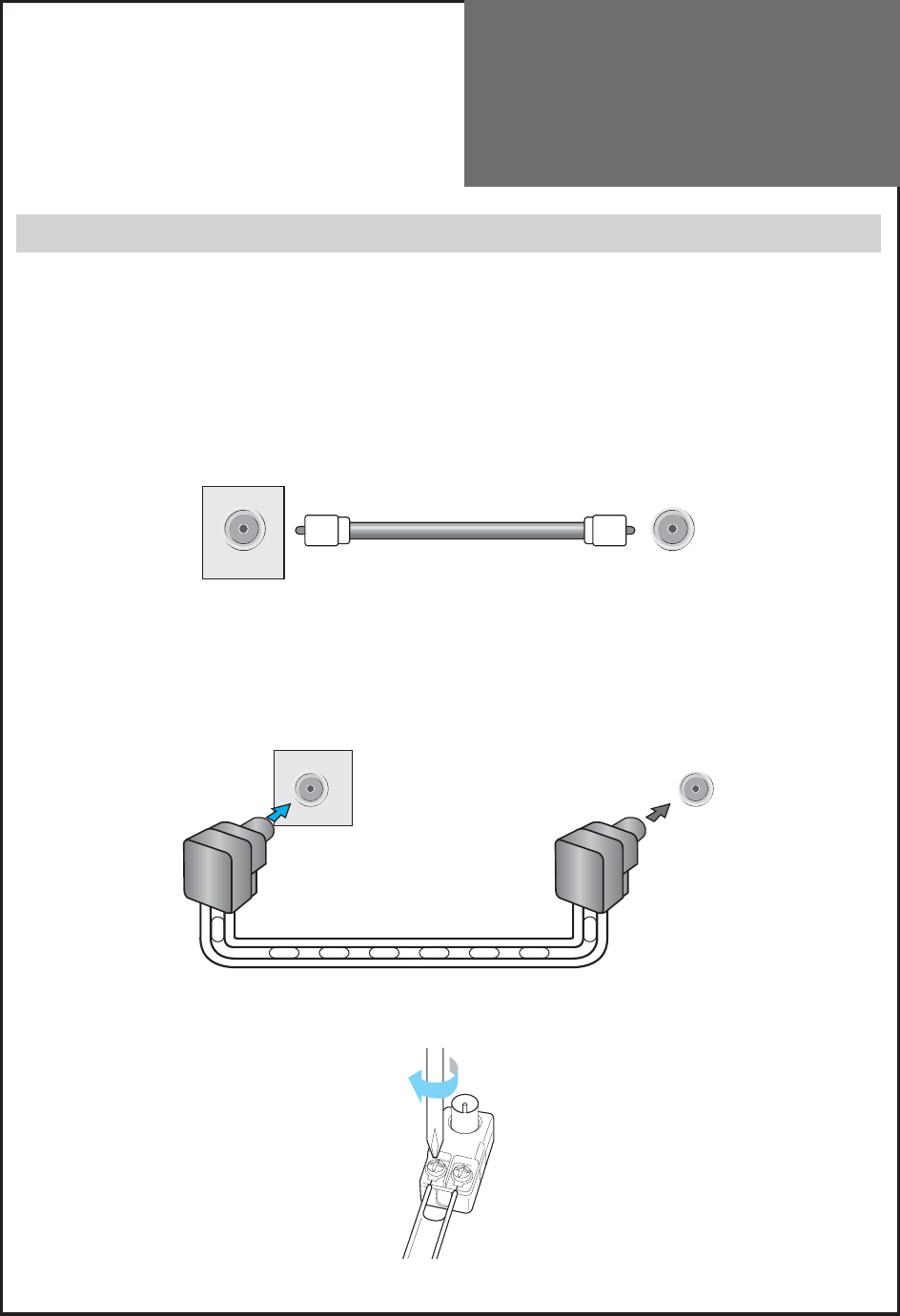 When a coaxial cable is used : Plug the coaxial cable to the antenna socket, and fix it firmly by turning it to the right.