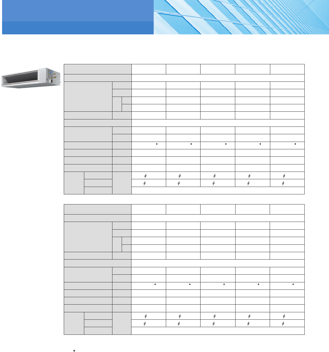 •Cooling: (*1) Indoor temp. of 27°CDB, 19.5°CWB, and outdoor temp. of 35°CDB.