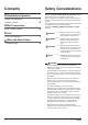 Contents Safety Considerations Read Before Operation Read these Safety Considerations for Operations carefully before operating an air conditioner or heat pump. Make sure that the unit operates properly during the startup operation. Instruct the user on how to operate and maintain the unit. Inform users that they should store this operation manual with the installation manual for future reference. Meanings of DANGER, WARNING, CAUTION, and NOTE Symbols: Safety Considerations ...........................