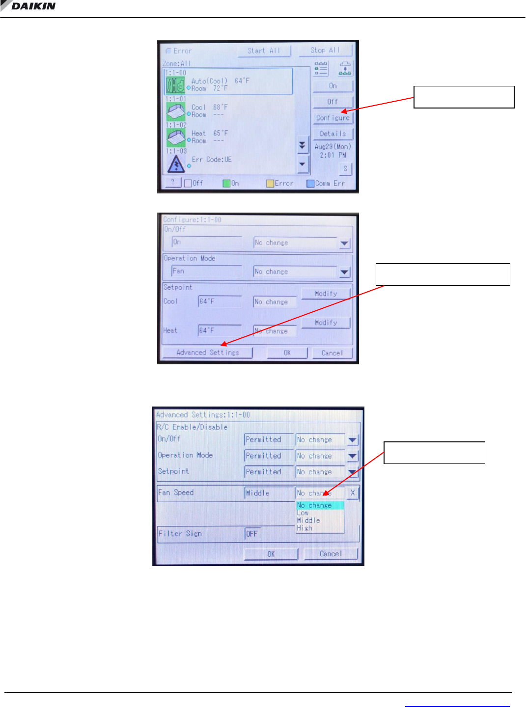 3. On the Advanced Settings screen, select the desired Fan Speed setting and press OK.