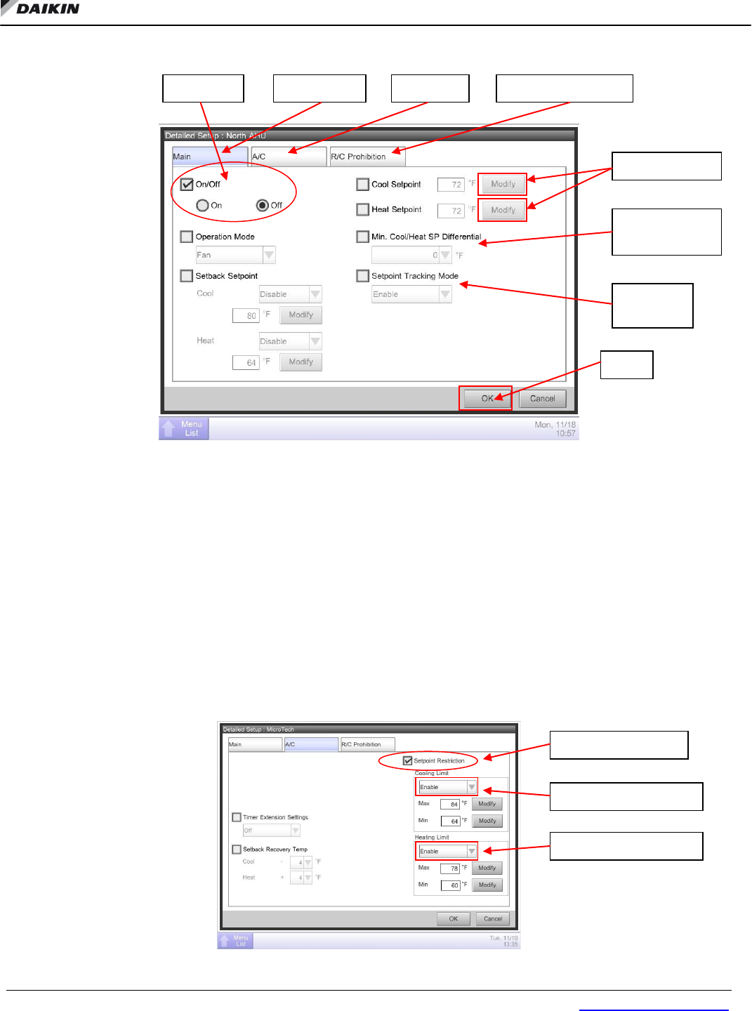 Limit and Heating Limit. Select “Enable” to restrict setpoints from the iTouch Manager. Some setpoint restrictions will