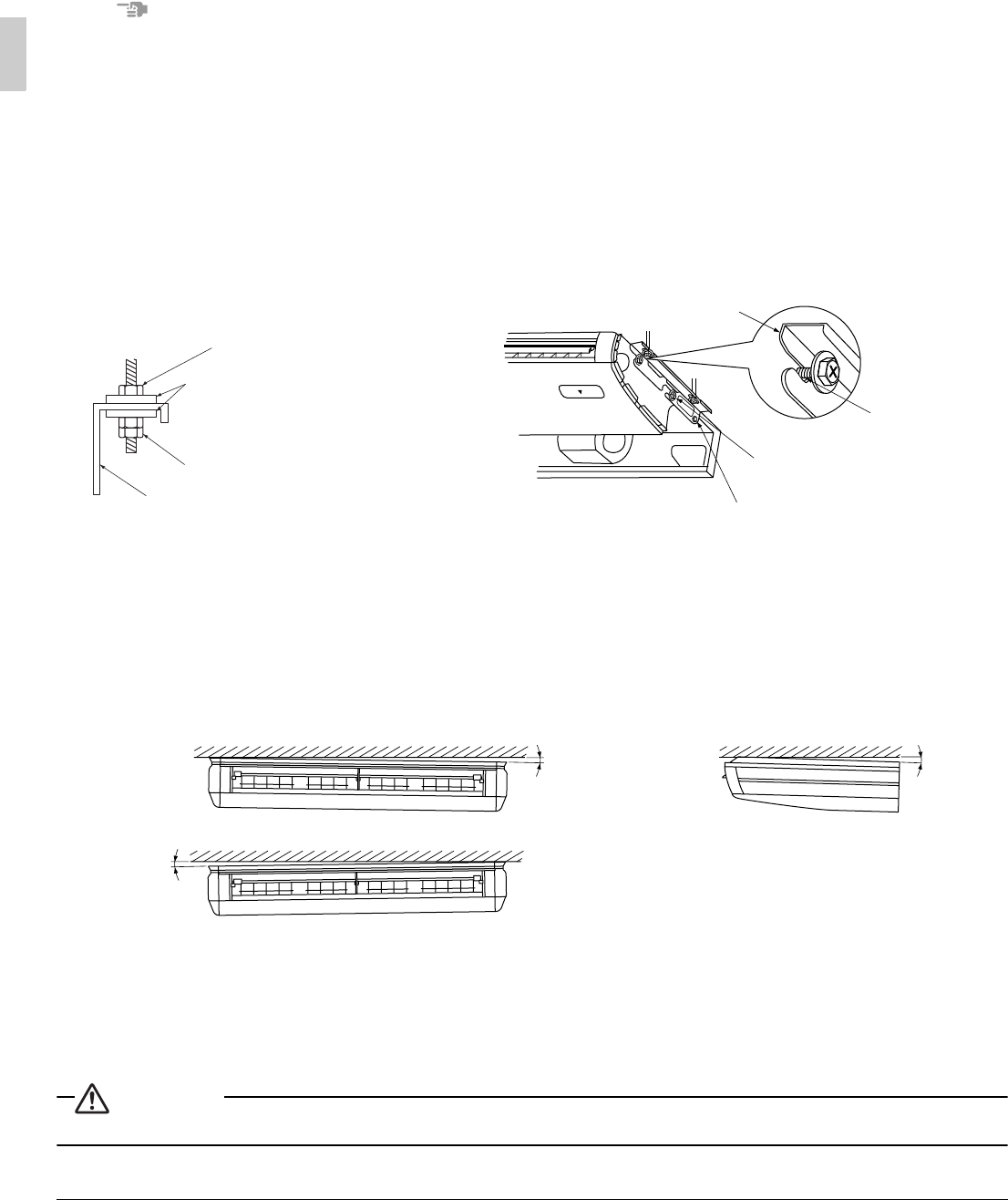 (2) Lift the indoor unit’s main body, insert the bolts (M8) for the hanger brackets into the attachment