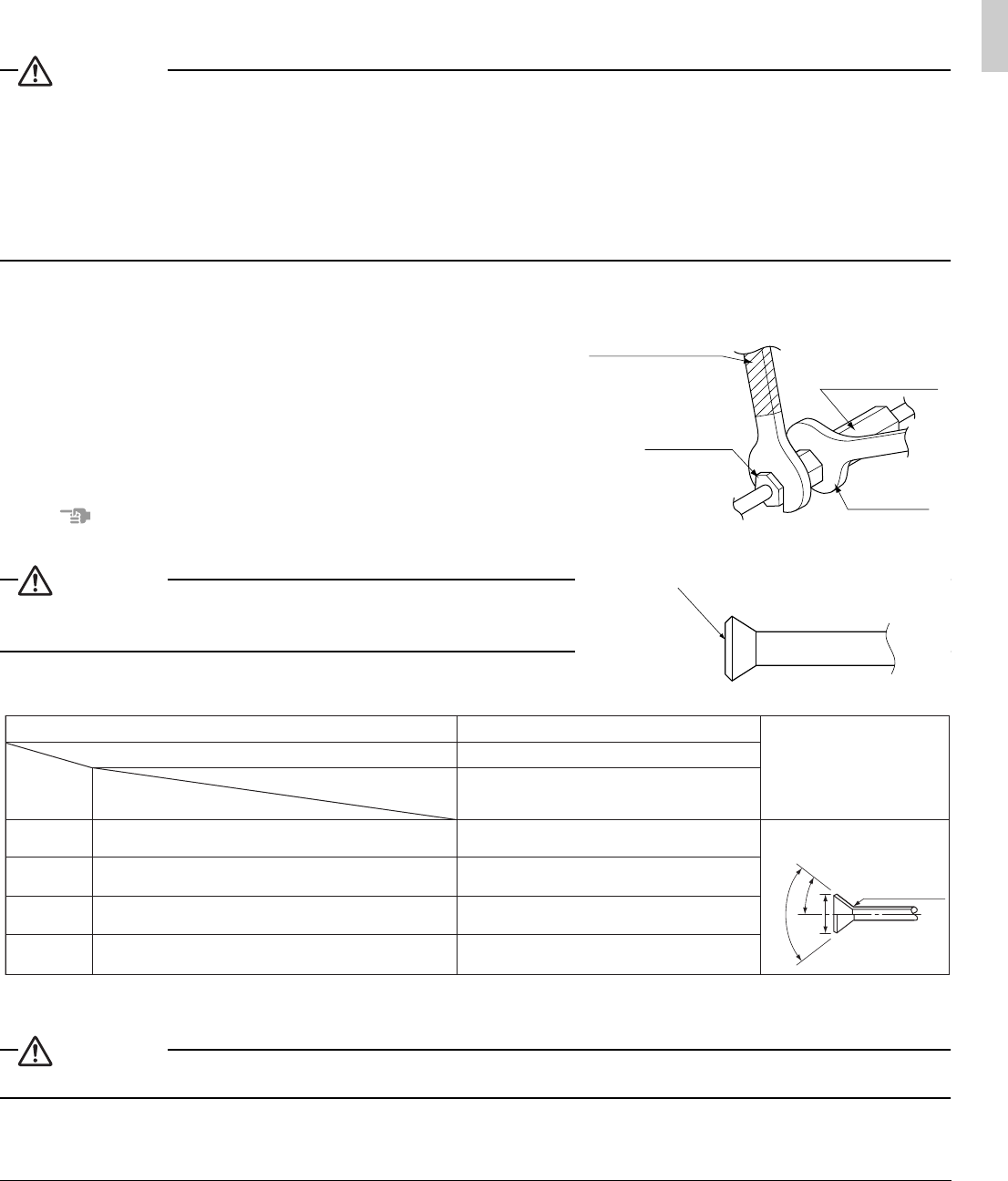 Overtightening may damage the flare and cause a refrigerant leakage.