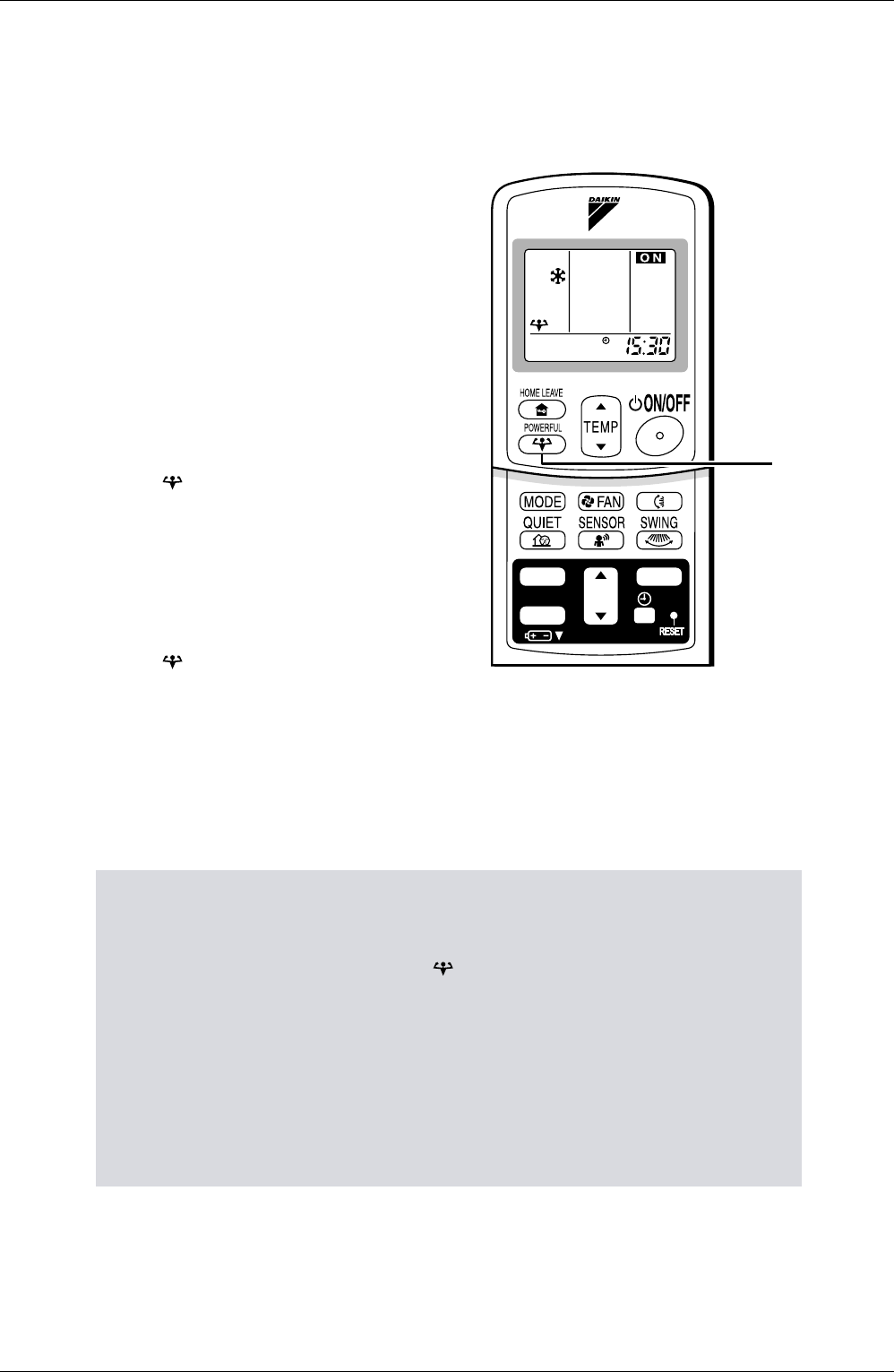 POWERFUL Operation can only be set when the unit is running. Pressing the operation stop button
