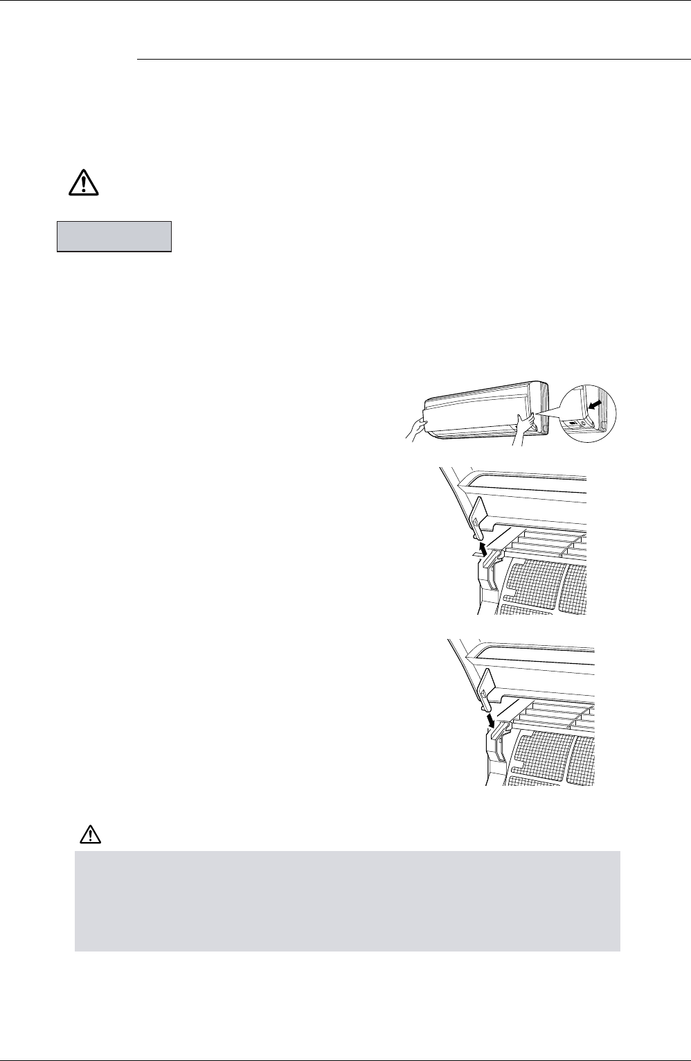 When removing or attaching the front panel, support the panel securely with hand to prevent it from falling.