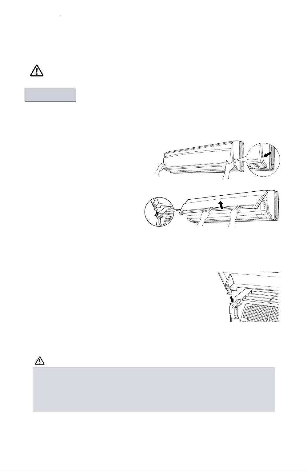 When removing or attaching the front panel, support the panel securely with hand to prevent it from falling.