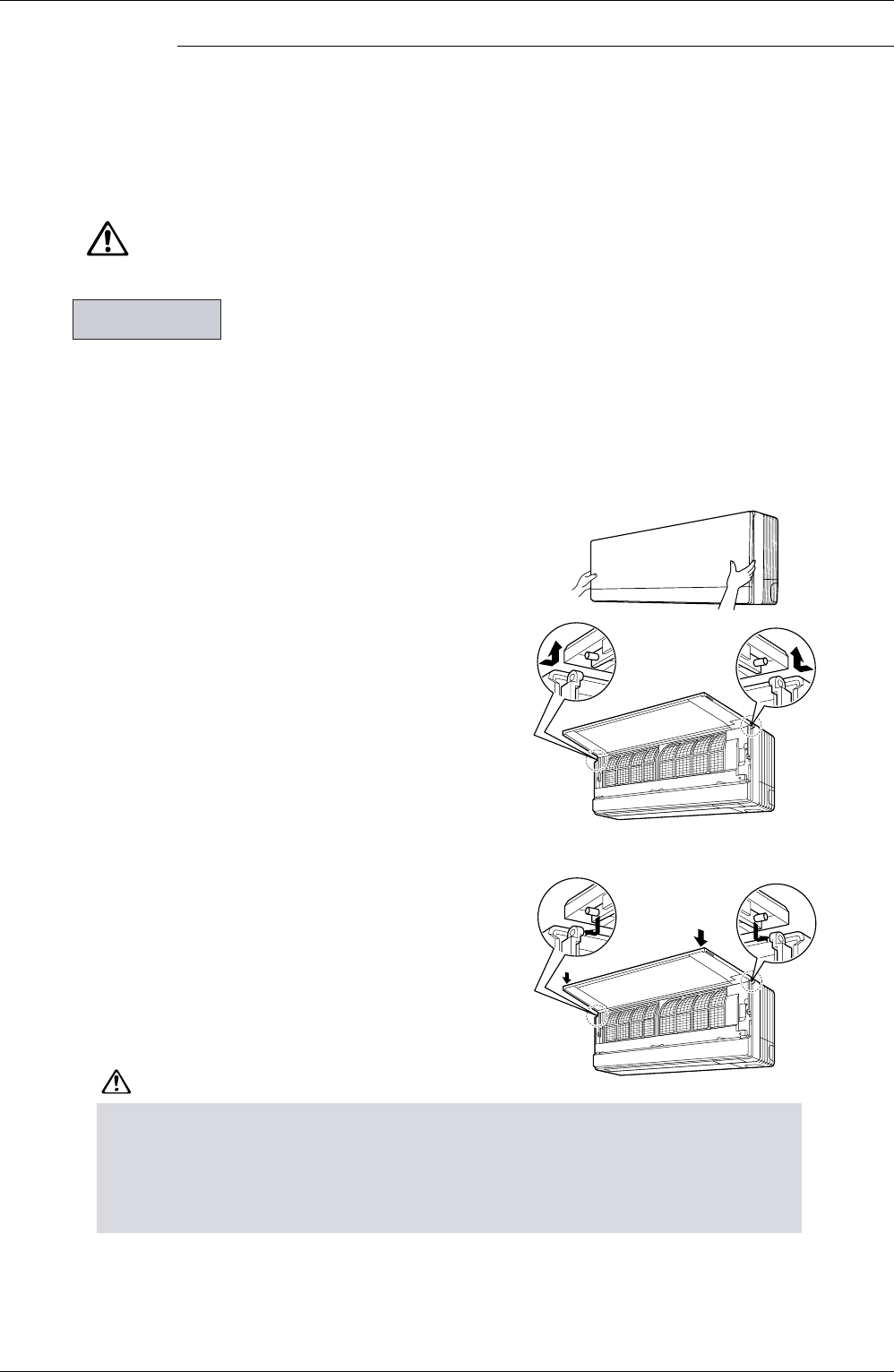 When removing or attaching the front panel, support the front panel securely with hand to prevent it from falling.