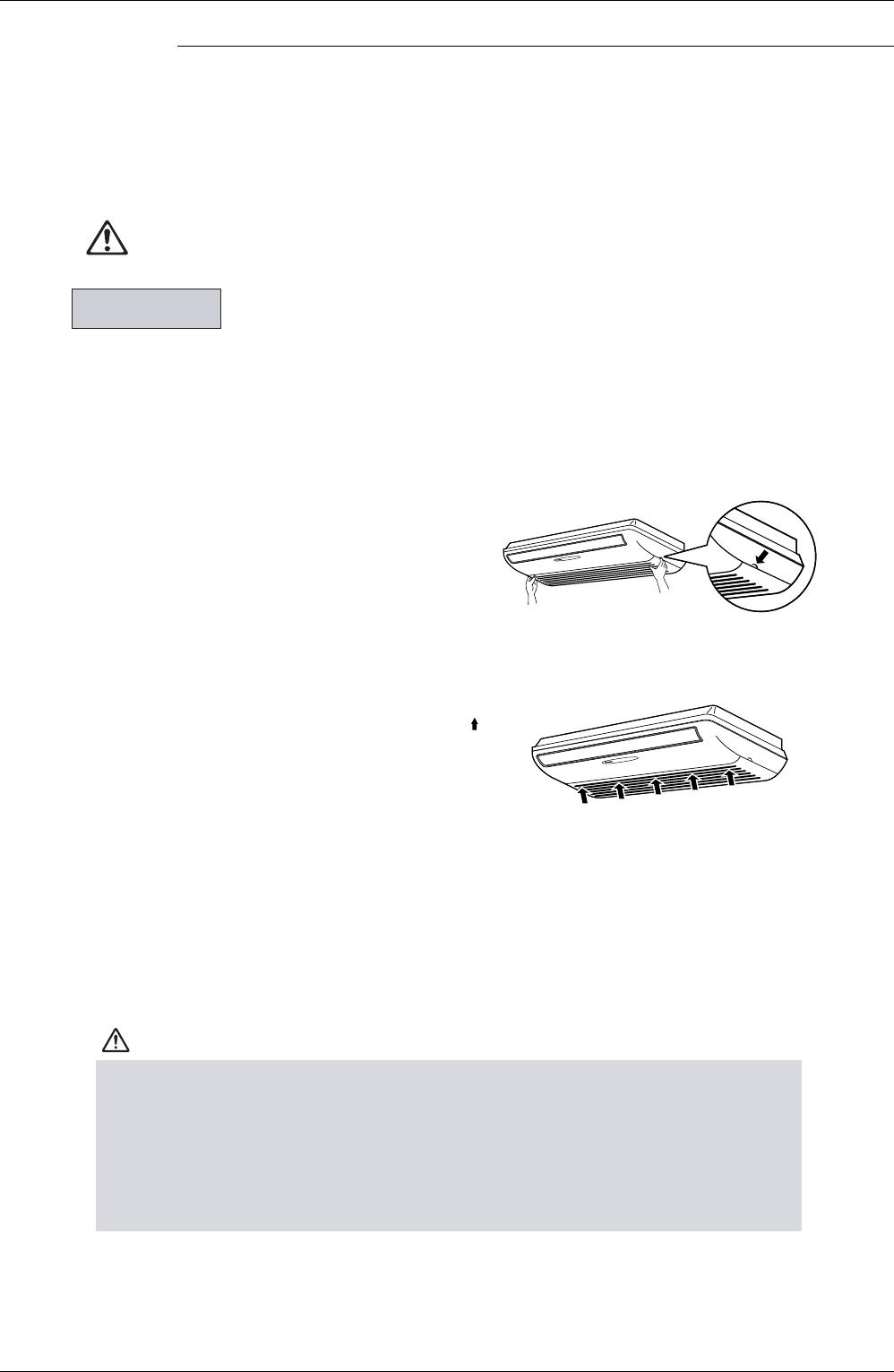 • Don’t touch the metal parts of the indoor unit. If you touch those parts, this may cause an injury.