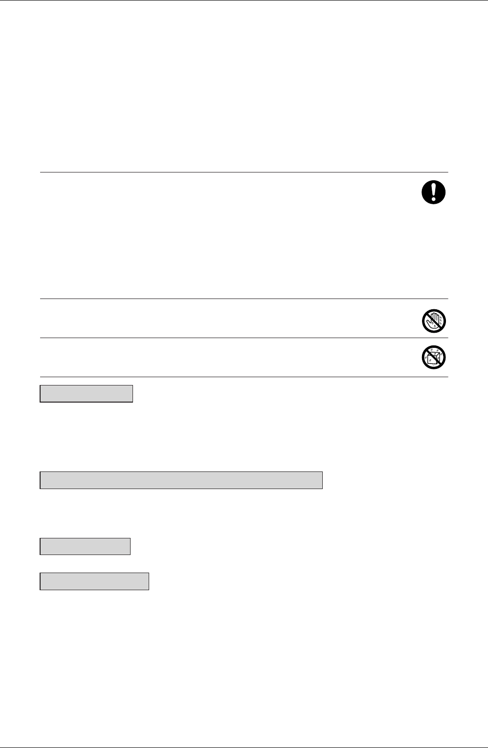 • Do not block air inlets nor outlets. Impaired air flow may result in insufficient performance or trouble.