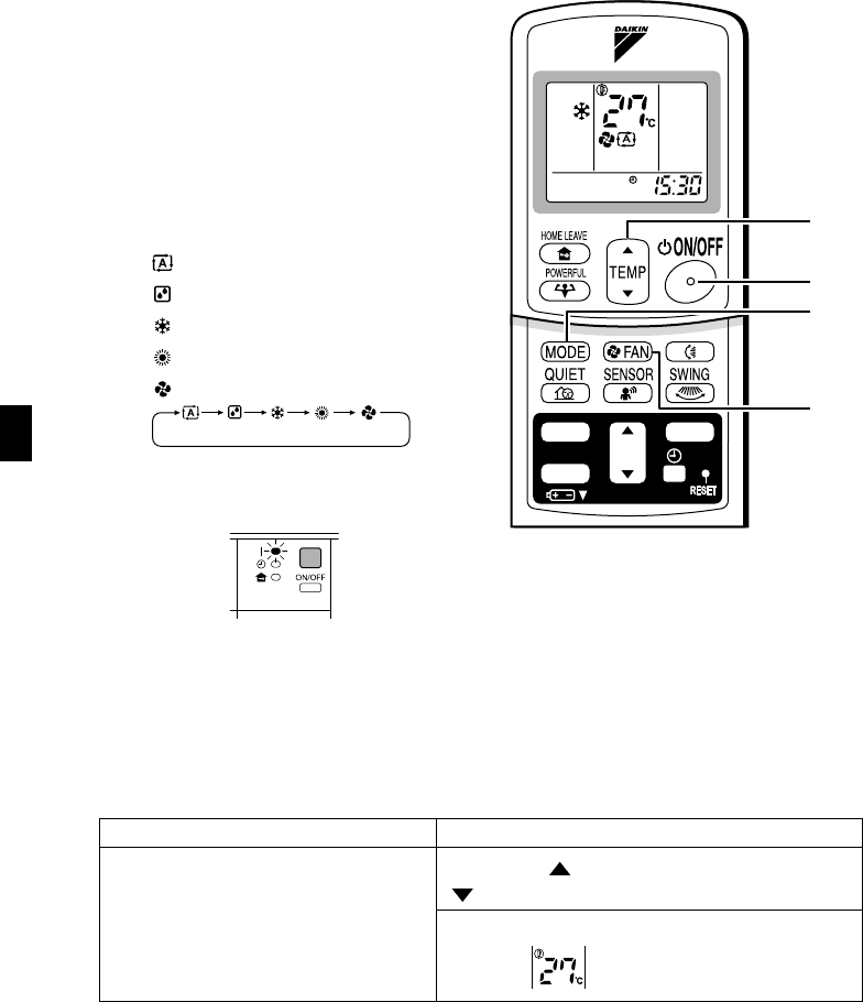 ENTFEUCHTER oder VENTILATOR-Betrieb AUTO, KÜHL oder HEIZ-Betrieb