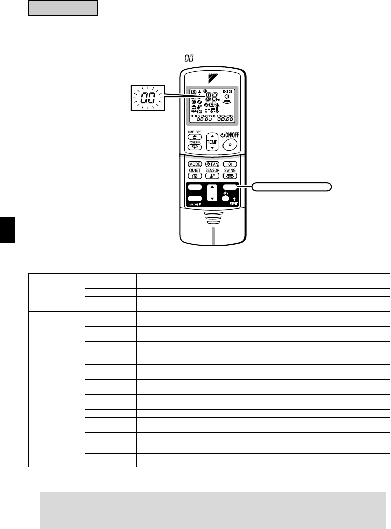 Bei der Baureihe ARC433 werden auf der Temperaturanzeige am Hauptgerät die zugehörigen Codes angezeigt.