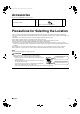 01_EN_3P253189-4E.fm Page 3 Monday, September 6, 2010 4:20 PM Accessories Accessories supplied with the outdoor unit: (B) Drain plug (Heat pump models) (A) Installation manual 1 1 There is on the bottom packing case. Precautions for Selecting the Location 1) Choose a place solid enough to bear the weight and vibration of the unit, where the operation noise will not be amplified.