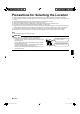 Precautions for Selecting the Location 1) Choose a place solid enough to bear the weight and vibration of the unit, where the operation noise will not be amplified. 2) Choose a location where the hot air discharged from the unit or the operation noise will not cause a nuisance to the neighbors of the user. 3) Avoid places near a bedroom and the like, so that the operation noise will cause no trouble. 4) There must be sufficient spaces for carrying the unit into and out of the site.