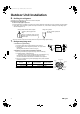 01_EN_3P182455-1.fm Page 3 Wednesday, May 17, 2006 5:37 PM Outdoor Unit Installation Drawings Wrap the insulation pipe with the finishing tape from bottom to top. Max. allowable length 20m Max. allowable height 15m Additionl refrigerant required for refrigerant pipe exceeding 10m in length. 20g/m Gas pipe O.D. 9.5mm Liquid pipe O.D. 6.4mm * Be sure to add the proper amount of additional refrigerant. Failure to do so may result in reduced perfomance.