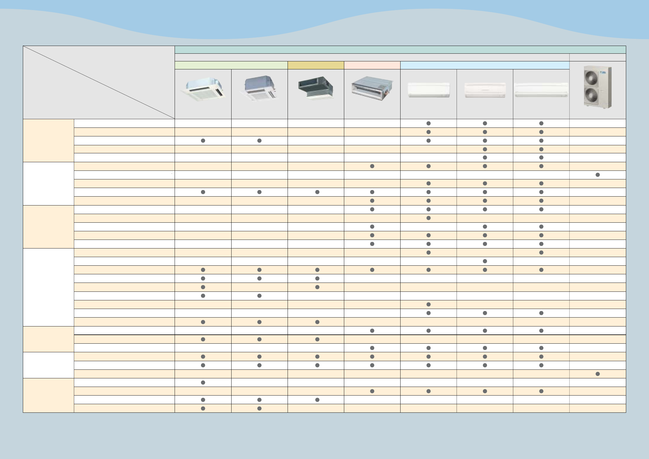 Wall-mounted type Duct-connected typeCeiling-mounted cassette type