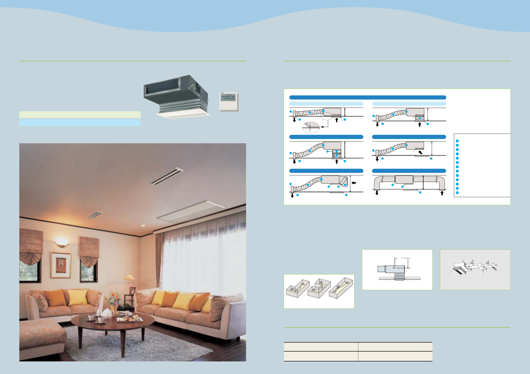 The indoor unit can be installed in rooms with as little as 350 mm between the drop ceiling and ceiling slab. It also works with