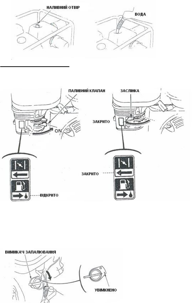 Перш ніж запускати двигун, обов’язково наповніть помпу вільну камеру чистою водою.