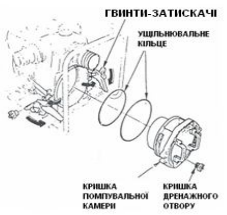 7. 5.Встановіть кришку на корпус помпувальної камери і зафіксуйте її на кріпленнях,