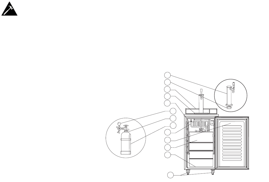 • Avant de brancher la glacière de bière pression, laissez-la en position verticale pendant environ 6