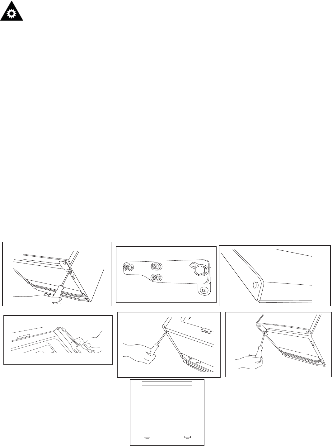 en vous assurant qu’elle a la bonne orientation. Vissez la charnière inférieure en place sur le
