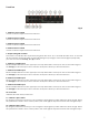 Frontview Fig. 2 1. Channel 1 level control Use this control to adjust the level of channel 1. 2. Channel 2 level control Use this control to adjust the level of channel 2. 3. Channel 3 level control Use this control to adjust the level of channel 3. 4. Channel 4 level control Use this control to adjust the level of channel 4. 5. Output L/R signal VU meter This meter is a multi-step LED; respectively the green LEDs show -20, -5 and 0dB. red LEDs show +6 and +20 dB.