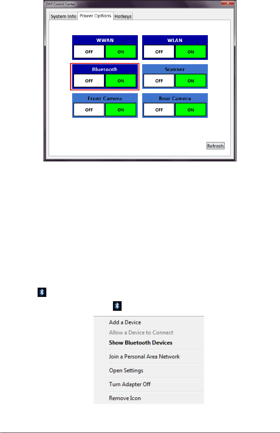 1. Make sure the Bluetooth adapter is on as indicated by the Bluetooth icon