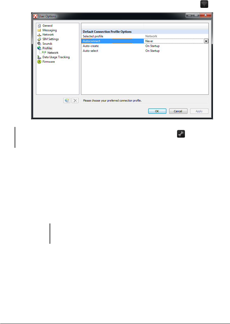 Watcher main screen, tap the Wireless Prole ( ) icon.