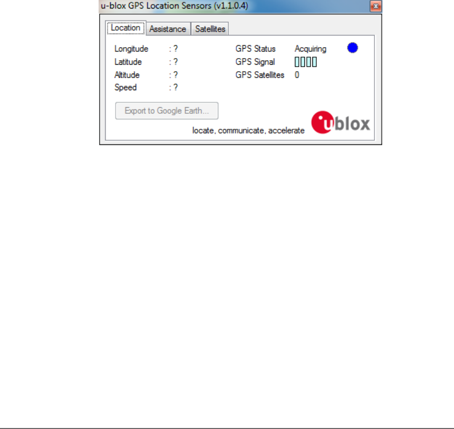 To open u-blox GPS Location Sensors, tap Start > All Programs > u-blox >