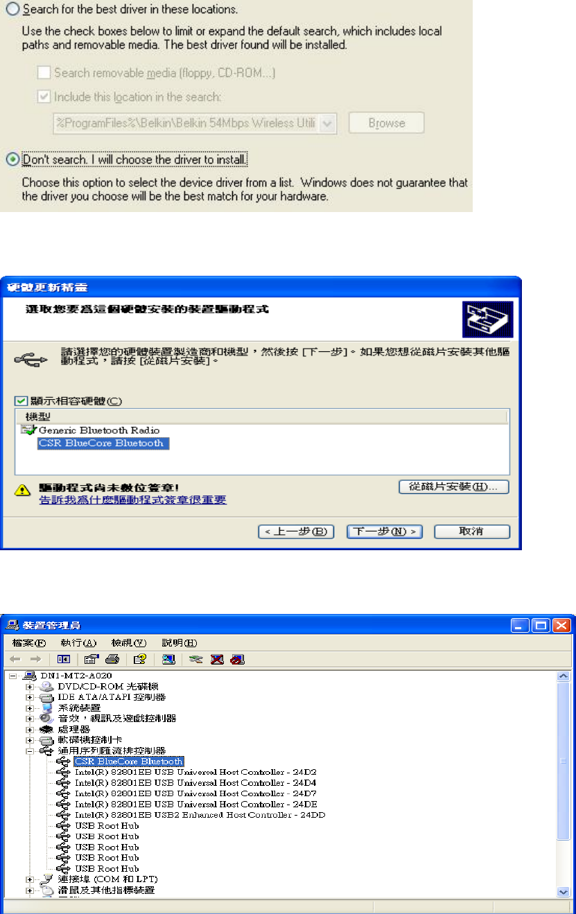• A list of compatible drivers will be shown, select the “Belkin Bluetooth Device” which