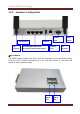 Cellular M2M-IoT Gateway 1.2.3 Hardware Configuration LED Indicators 3G Antenna USB Port Auto MDI/MDIX RJ-45 Ports 4x FE LAN to connect local devices RS 485 Port Console Port Reset Button 3G Antenna ※Reset Button The RESET button provides user with a quick and easy way to resort the default setting. Press the RESET button continuously for 6 sec, and then release it. The device will restore to factory default settings.