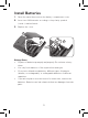 Install Batteries 1. Open the stand then remove the battery compartment cover. 2. Insert two AAA batteries according to the polarity symbols (+ and –) marked inside. 3. Replace the cover. 2 3 1 Battery Notes: • Dispose of batteries promptly and properly. Do not burn or bury them. • Use only fresh batteries of the required size and type. • Do not mix old and new batteries, different types of batteries (alkaline, or rechargeable), or rechargeable batteries of different capacities.