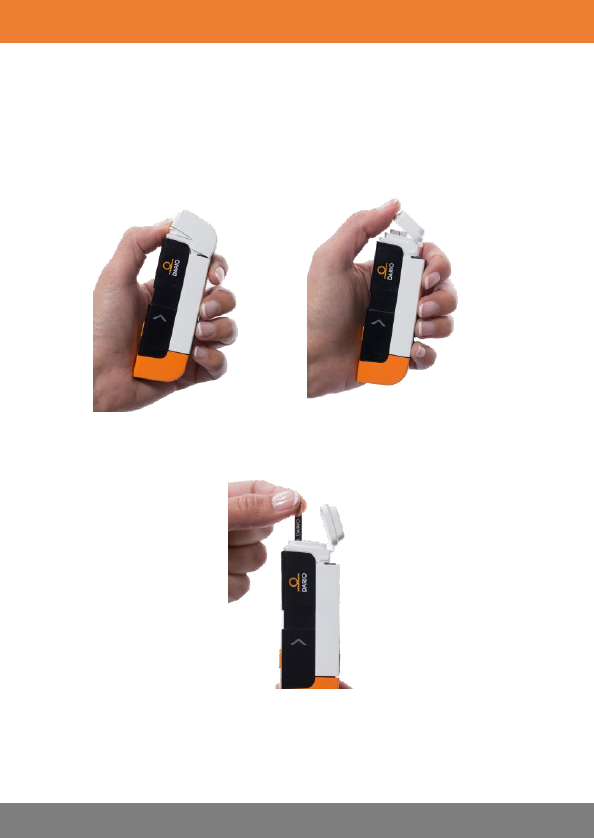 2. Snap open the test strips cartridge cap by pushing up the edge.