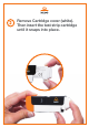 Remove Cartridge cover (white). Then insert the test strip cartridge until it snaps into place.