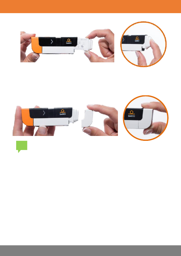 1. Remove the orange lancet device cover from the Dario Housing, as
