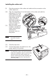 Installation Guide Installing the cutter stand unit (1) Check to make sure that the printer’s power switch is turned off, then disconnect the power cord. (2) Open the top cover. (3) Lift and remove the front cover from the printer. (Keep the removed cover in a safe place, because it is used when the auto cutter has been removed.