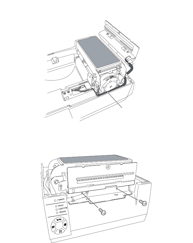 (7) Feed the cable, in 6, so that it lies along the printer’s case. When