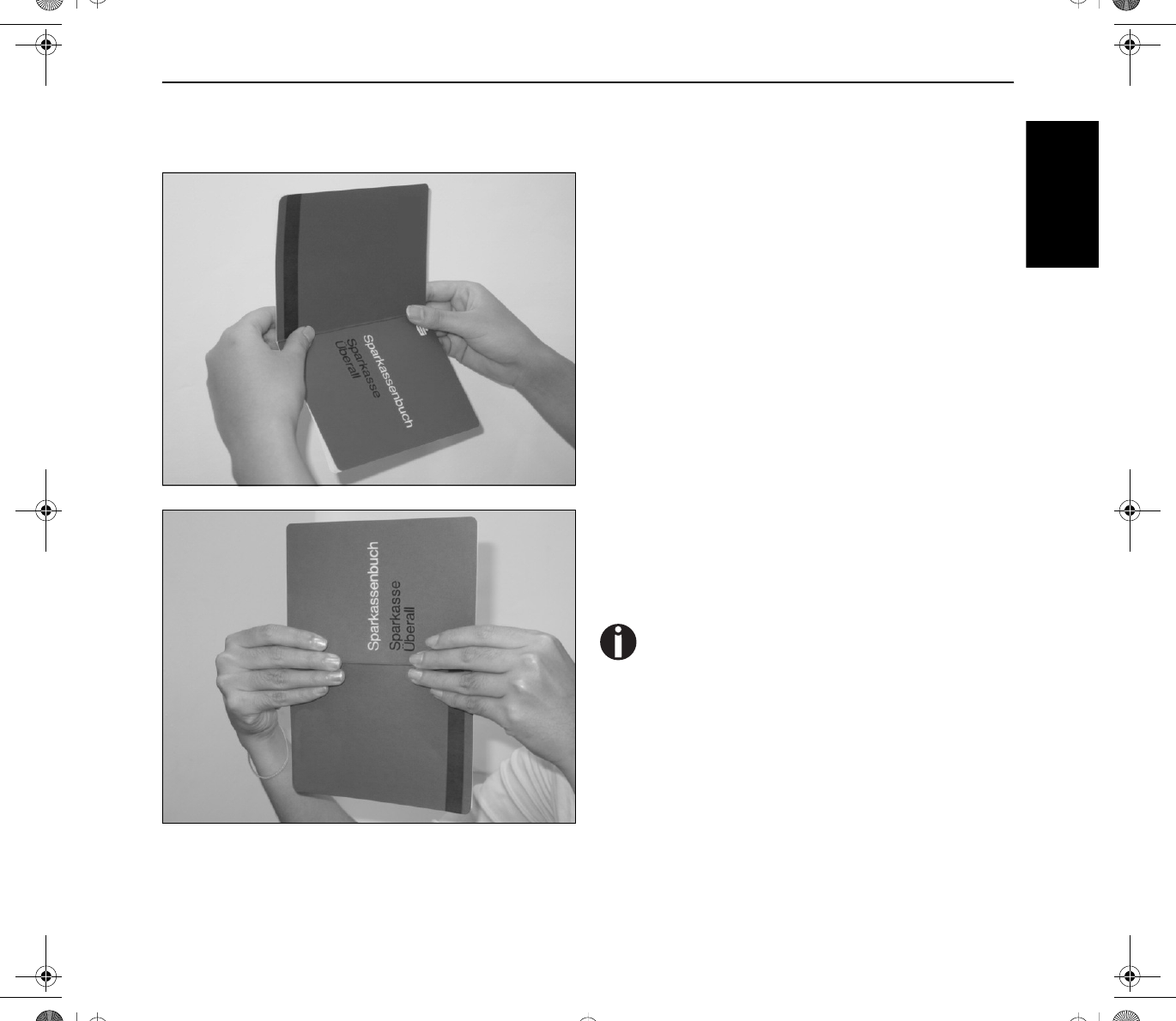 index fingers and slightly bend the passbook outwards.