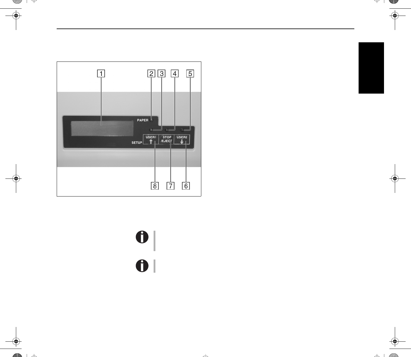 7 STOP/EJECT key: Sets the printer to Online/Offline