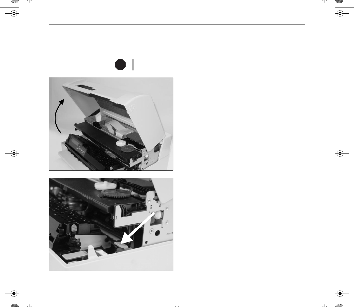This swings the printing mechanism backwards.
