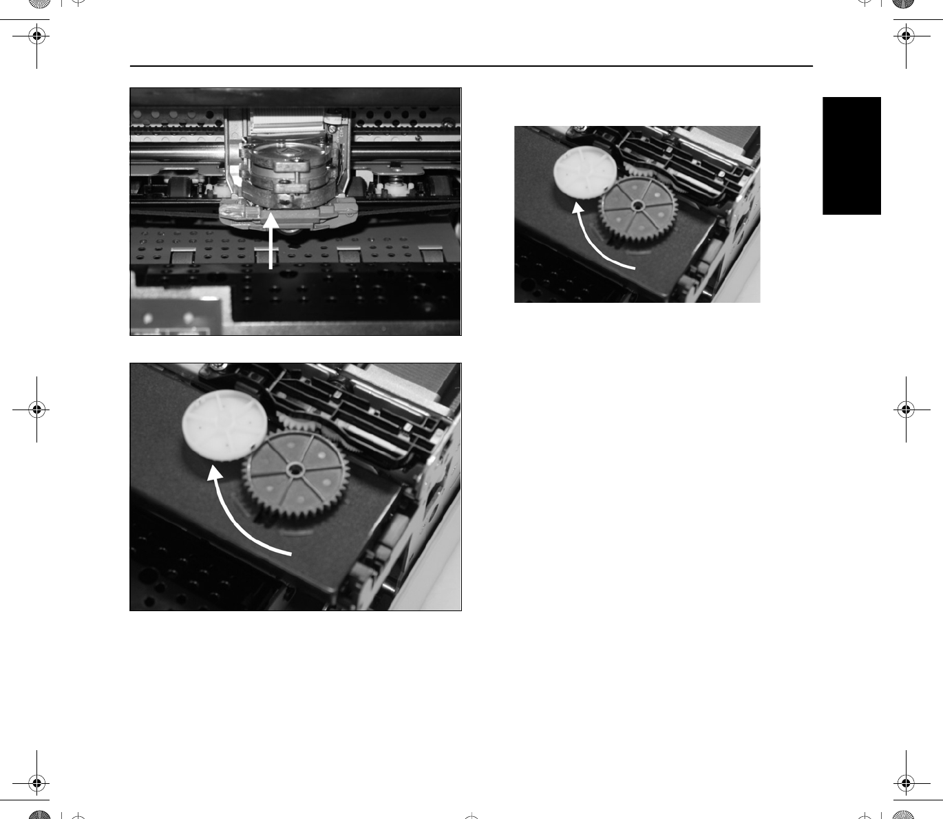 Pull the ribbon guide under the print head. Tighten the ribbon