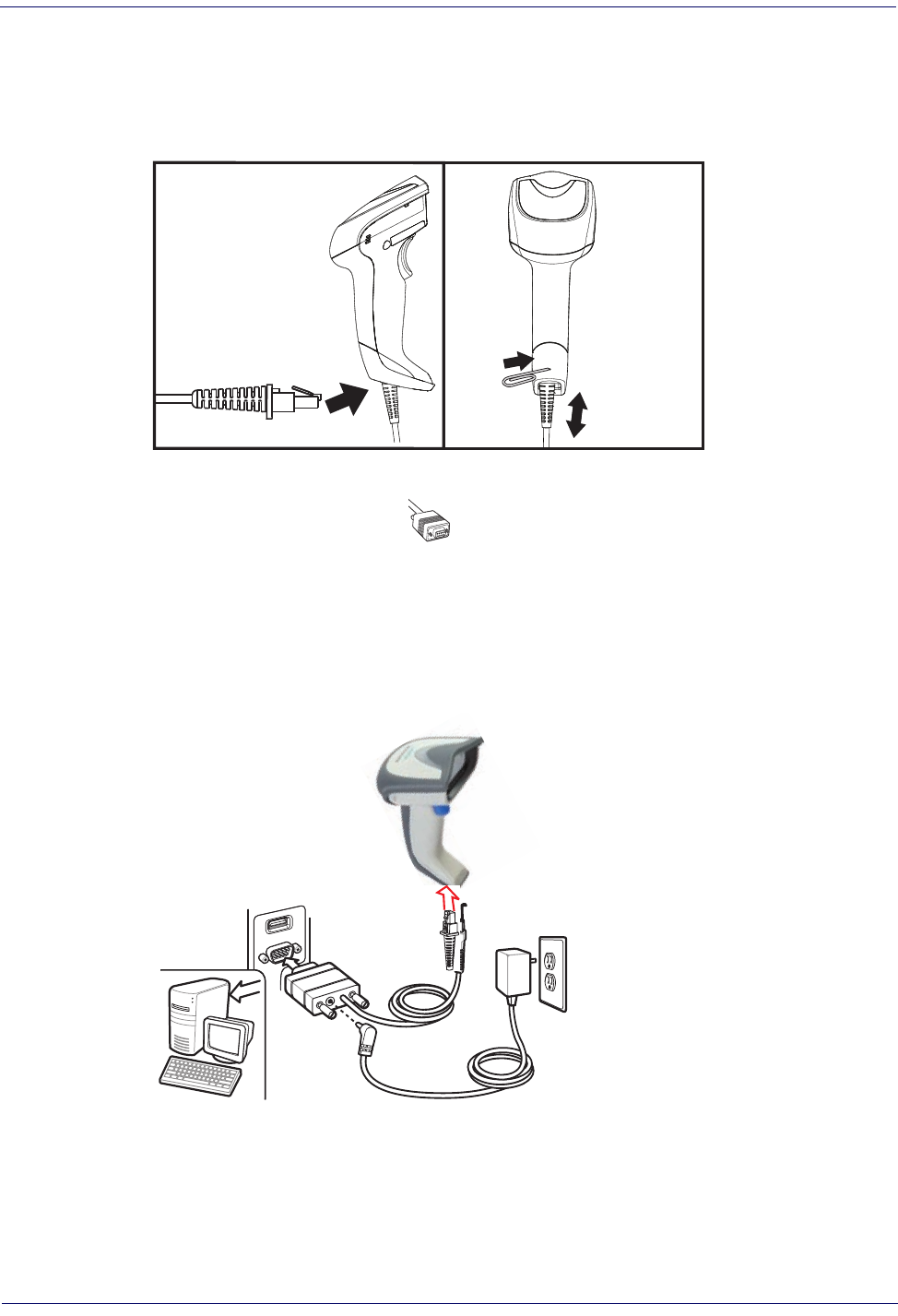 For Corded versions, connect the reader cable by inserting the cable into the handle as shown in